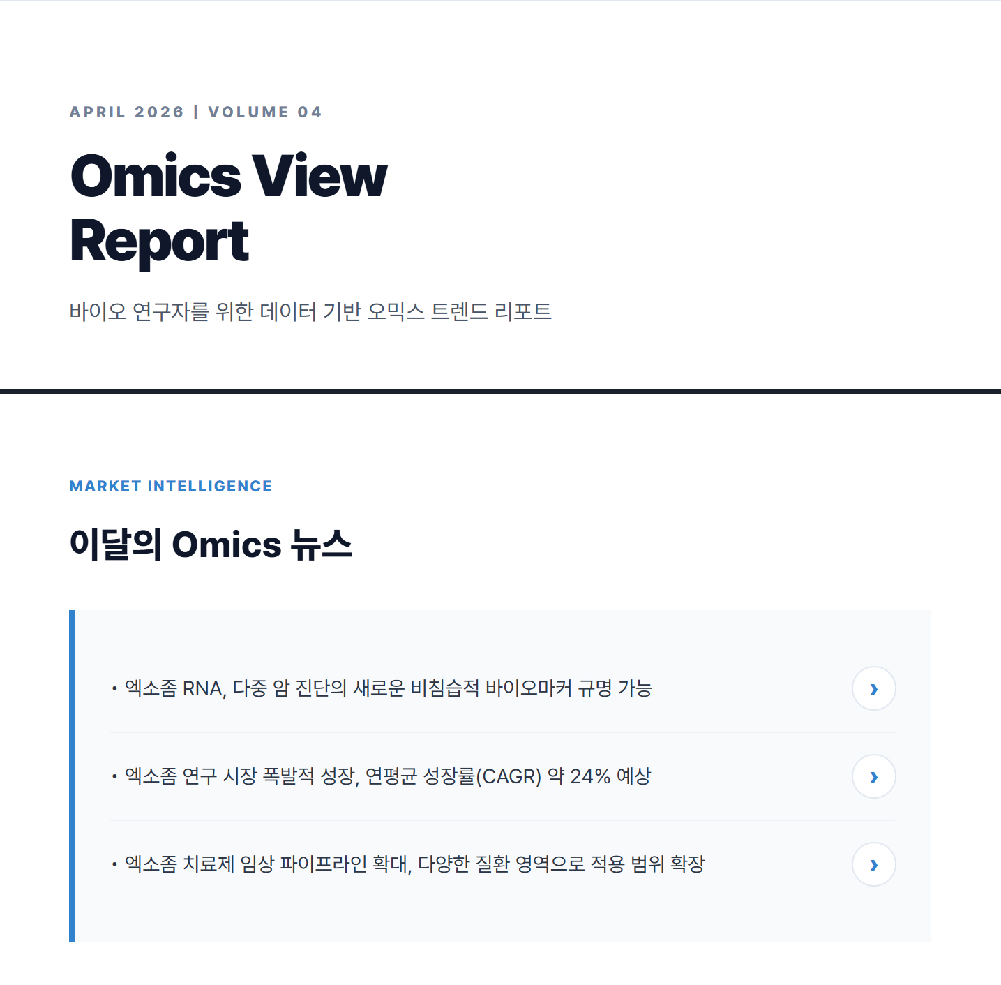 [Omics View] 엑소좀 RNA, 8종 암 동시 진단 | Vol.4