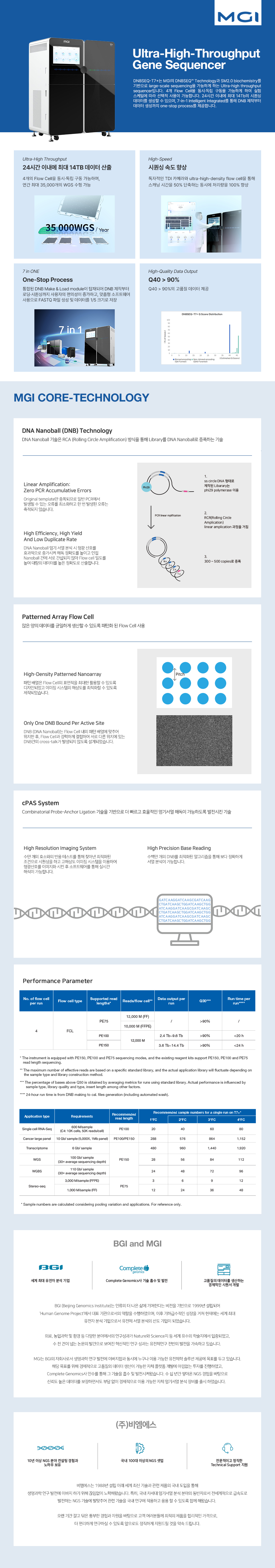- 24시간 이내에 최대 14TB의 시퀀싱 데이터를 생산하는 Ultra high throughput Sequencer
