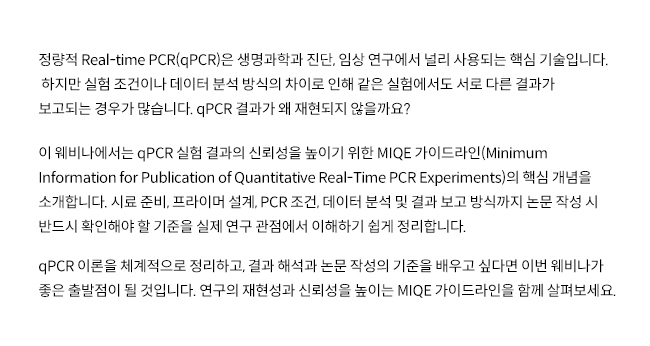 [웨비나] qPCR 이론적 배경 및 MIQE 가이드라인에 따른 연구 프로토콜 안내
